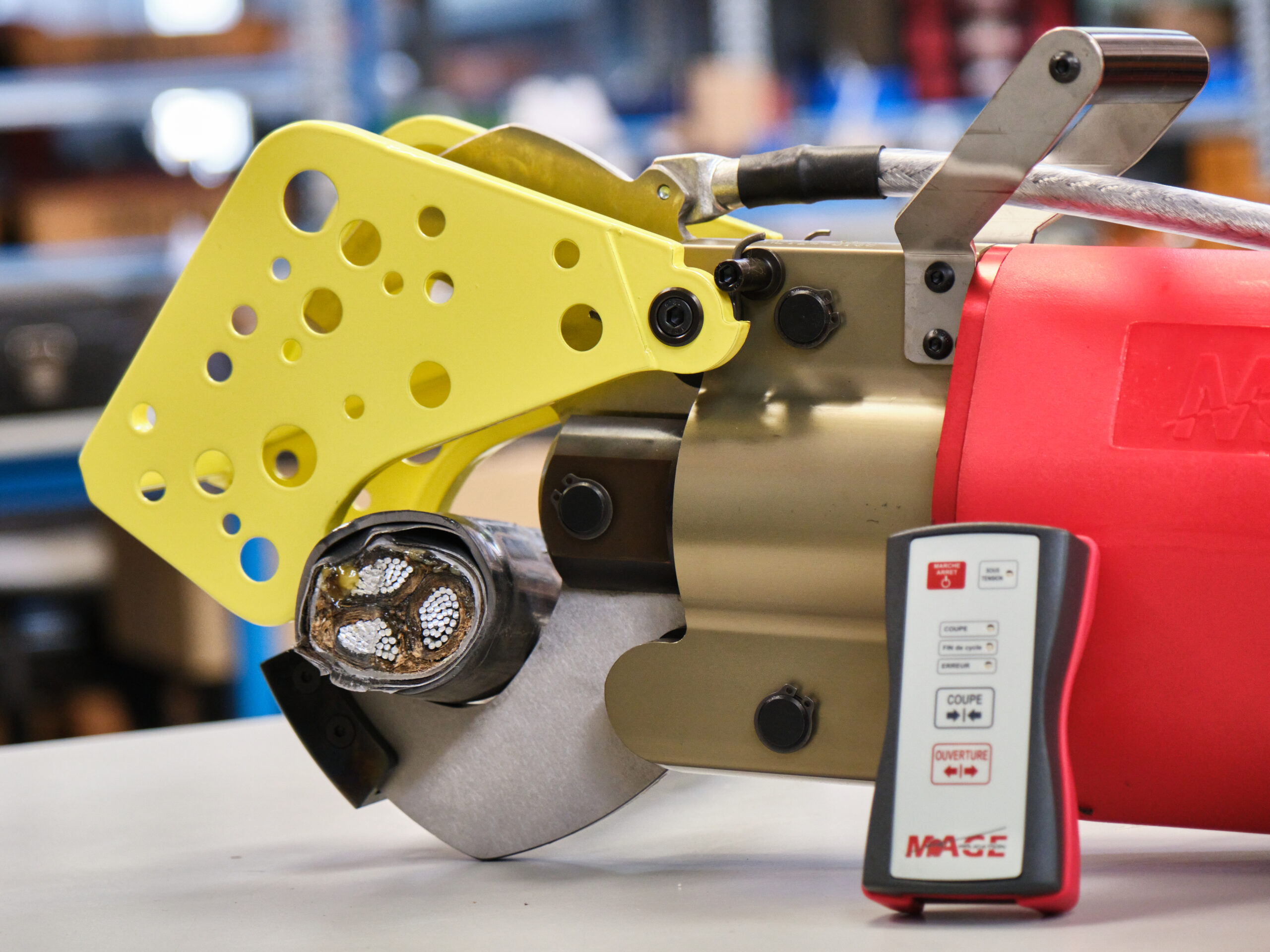 Diamètre de coupe : Ø95 mm Section de coupe maxi  : 3x240mm² cuivre NFC33-226 Force de coupe et d’ouverture : 110 kN Alimentation : batterie 25.2V 3Ah Li Ion Temps de charge : 15 min Autonomie : 50 coupes Dimension L x l x h : 720 x 120 x 260 mm Poids de l’outil : 17 Kg Matériel brevet : N°12743507.1 Homologué ENEDIS :